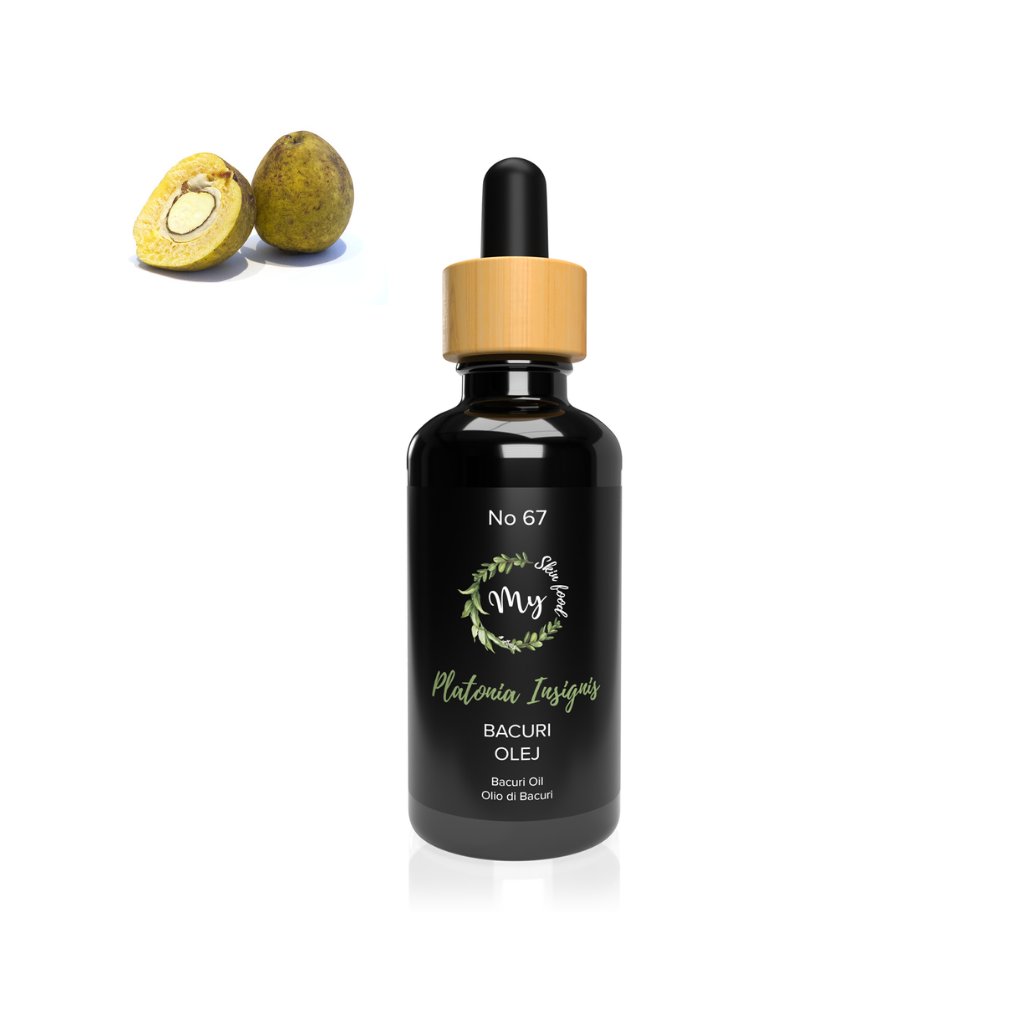 Olej Bacuri se může pochlubit mnoha stejnými výhodami jako máslo Bacuri, protože olej se ve skutečnosti získává filtrací (neboli frakcionací) másla Bacuri. Během filtrace se všechny výživné látky z másla odčerpají do koncentrovaného oleje, zatímco sloučeniny, díky nimž je máslo pevné a voskovité, zůstanou zachovány. Na rozdíl od másla, které zůstává při pokojové teplotě pevné a voskovité, má olej konzistenci podobnou typickému oleji lisovanému za studena, což usnadňuje jeho použití v kosmetických přípravcích.